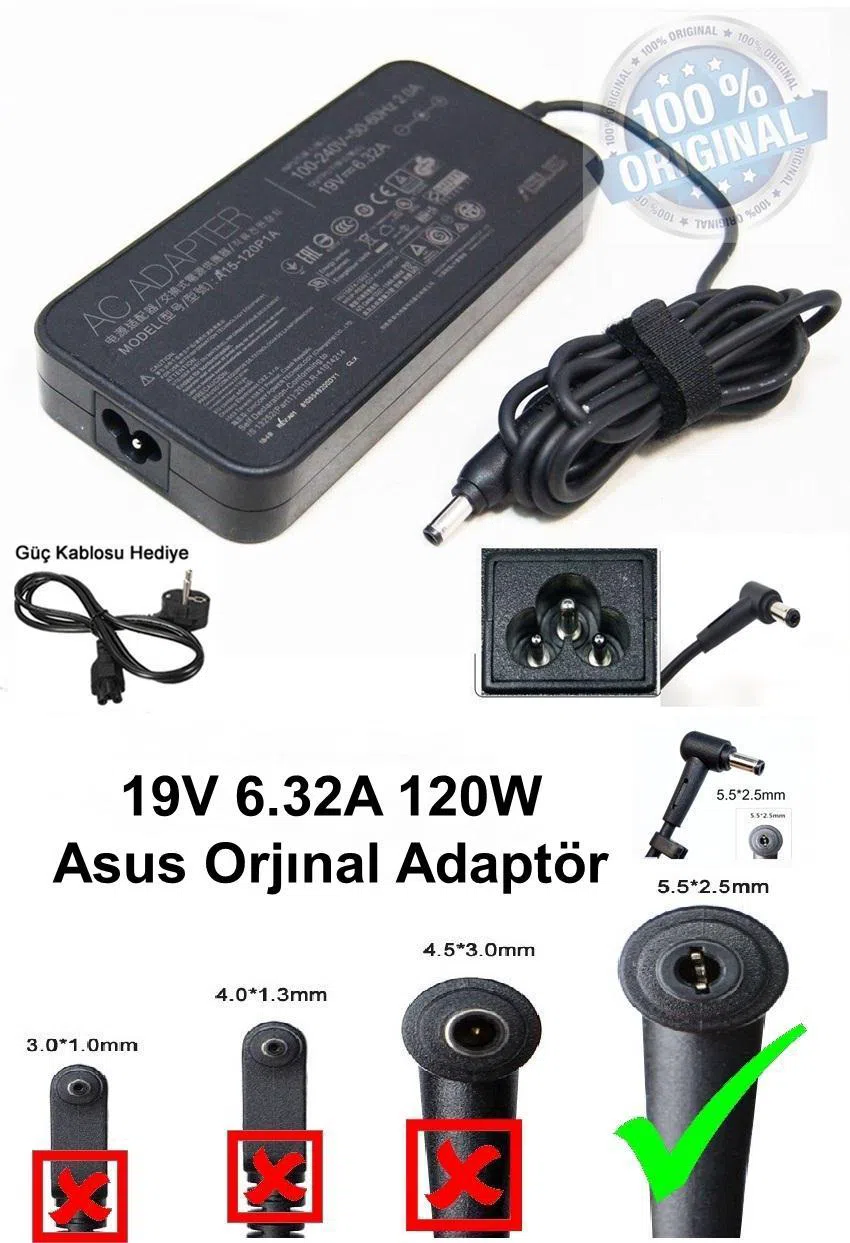 ORJINAL ASUS TUF FX705GE FX705GD Adaptör Şarj Cihazı 19v 6.32A 120w Notebook Adaptörü
