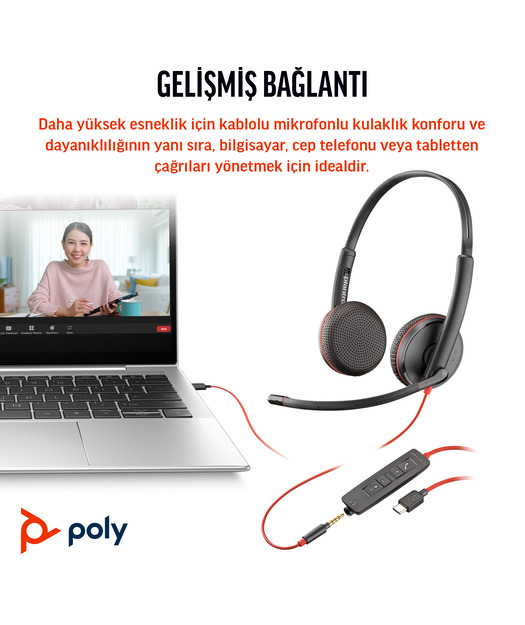 Poly Blackwire 3325 Stereo Mikrofonlu Kulaklık